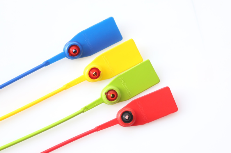 因为塑料封条以上的特性,使得它在运输过程中起到了很大的作用,不止可以实现铁路集装箱运输全过程监控,铁路集装箱运输,还可以减少工作人员的工作强度,工作效率,并且可以跟踪和管理,获得经济和社会效益。