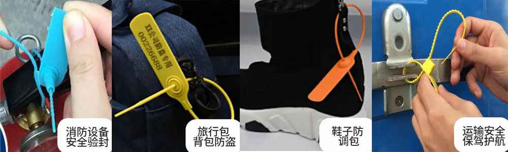 03.塑料封条的锁芯是可以圆形的,也可以扁状的,也可以齿状。形状不同可以用在不同的产品上面,例如服装辅料,衣服鞋子上。封条条身上的锯齿可以与塑料口里面的弹性塑料扣密合,拉力大,因此塑料封条能起到十分牢固的固定作用。
